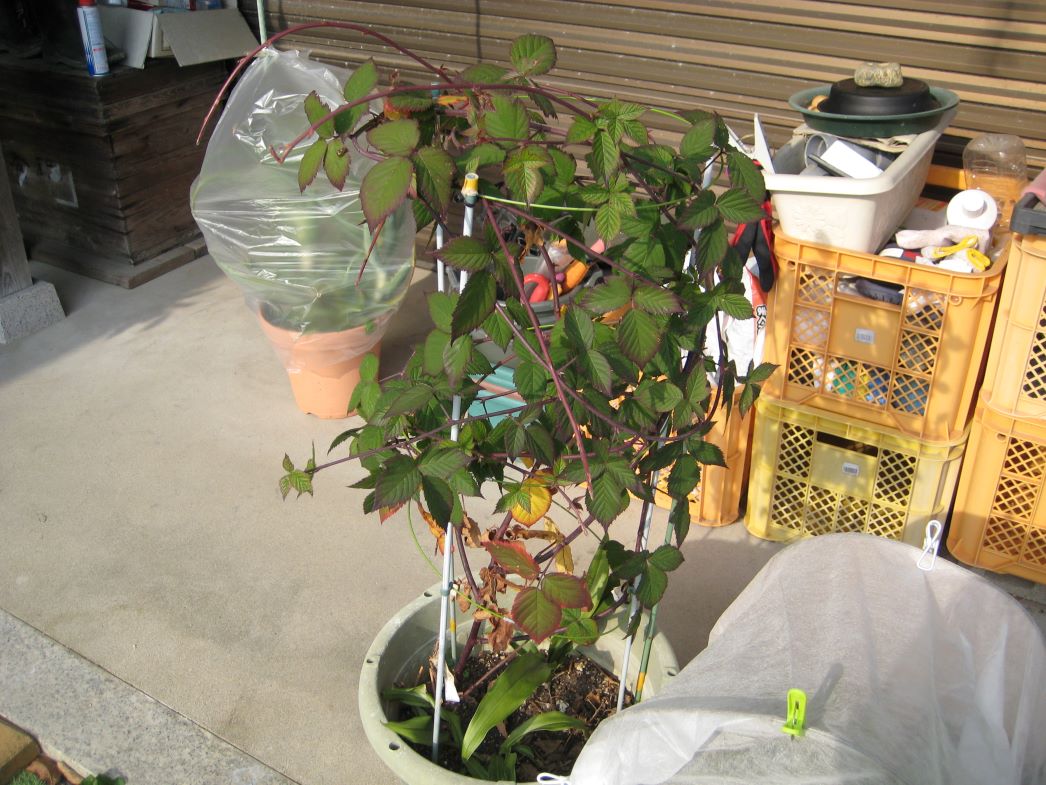 さて、このブラックベリーは前にも書きましたが最初は小さな鉢植えで、室内の観賞用に仕立てられたものでした。1年間は室内で楽しみ、翌年に庭へ移植したものが毎年着実に成長して、秋に伸びたツル枝を整理して冬越しさせると、春から夏にかけてしっかり成長し、夏の終わりから秋にかけて大量の花をつけ実を収穫させてくれるようになりました。