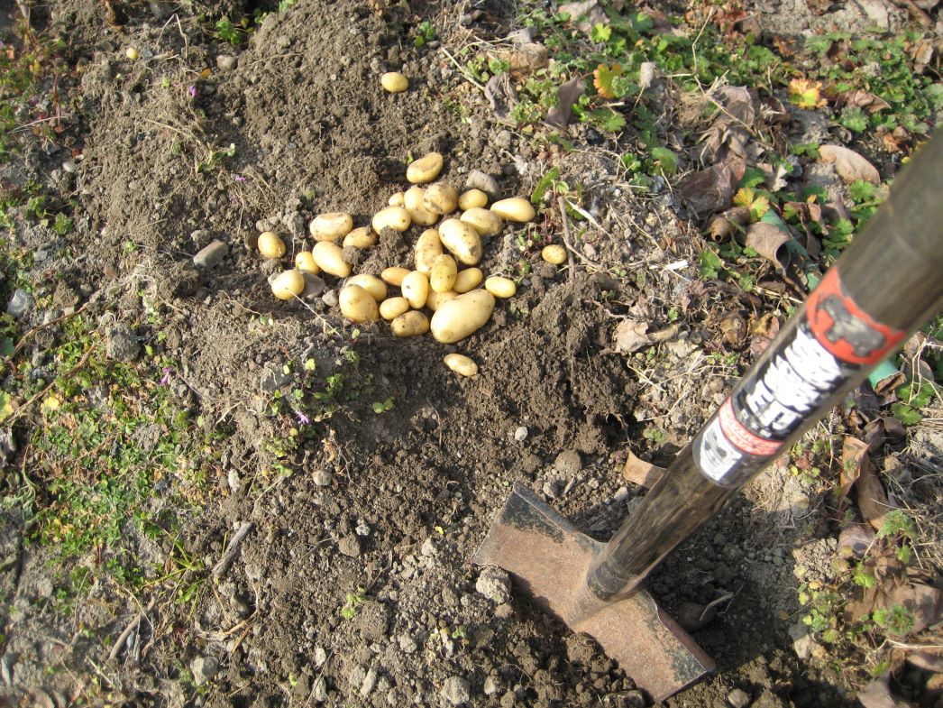 △本来は地上の葉が枯れたら掘り出しの合図なのですが、昨年末の急激な天候の変化についていけず枯れたので、そのまま放っておいたものです。年が明けてから畑の整備を兼ねて掘ったら、ビックリなことに小ぶりですがジャガイモがそれなりに出てきました。