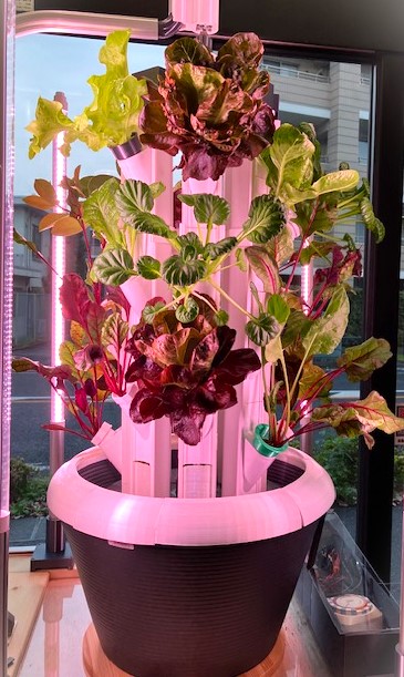 家庭用と店舗タイプ 店舗タイプ 1. 野菜は24株収穫 2.設置面積 0.5㎡ 3.高さ1.0m 特徴:○ 24株を同時栽培可能 ○植物育成LEDを使用 ○インテリア性の高いタワー構造 ○成長が見える癒しの装置 ○清潔で手入れが簡単 キッチン菜園 特徴:○家庭内で種植え、発芽、収穫、食卓へと安心安全自分の野菜として見守る楽しさ癒し ○食育として教育用途にも活用 導入メリット 1.採れたて野菜をすぐに収穫 2.空間のアクセント 3.毎日の驚きと発見 4.動く観葉植物として楽しめる 5.土を使わず衛生的